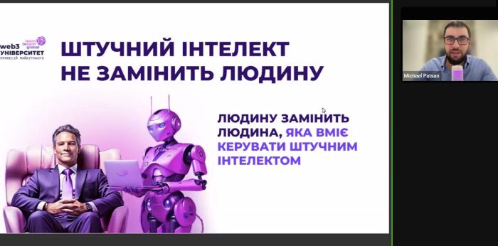 Доцентка кафедри гуманітарних дисциплін Сумської філії ХНУВС Тетяна Пономаренко та здобувачі вищої освіти у межах навчальної дисципліни «Логіка» взяли участь у воркшопі українського інвестора, підприємця, експерта з питань міжнародних фінансових ринків і криптовалют, фінансового радника, засновника Web3-університету професій майбутнього Михайла Пацана на тему «Використання генеративного штучного інтелекту в повсякденному житті».
