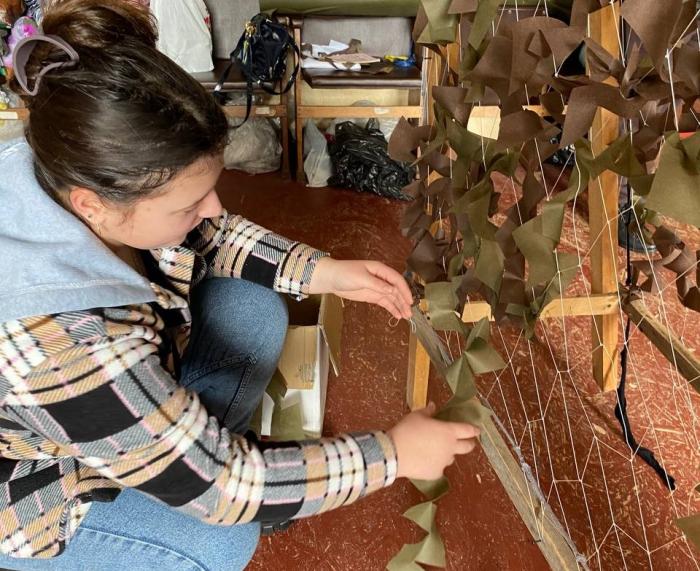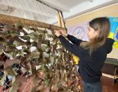 Катерина Красій і Віталій Кийков у черговий раз долучилися до плетіння маскувальних сіток у волонтерському центрі «Моторний вулик», а Євгенія Варварич і Каріна Берьозкіна вперше прийшли до благодійного фонду «Людина Ольга Сумщина», який працює в Тростянецькій громаді.