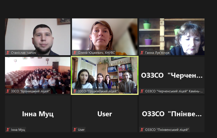 Доценти кафедри теорії та історії держави і права факультету № 1 Станіслав Іванов та Олена Юшкевич за підтримки представниці відділу освіти управління гуманітарної політики Камінь-Каширської міської ради Волинської області Ганни Лук’янчук організували онлайн-зустріч із випускниками закладів загальної середньої освіти, зокрема: Камінь-Каширський ліцей № 1 імені Євгена Шабліовського, Броницький, Пнівненський, Підцир’ївський, Черченський, Ворокомлівський, Грудківський та Видертський ліцеї Камінь-Каширської міської ради Волинської області.