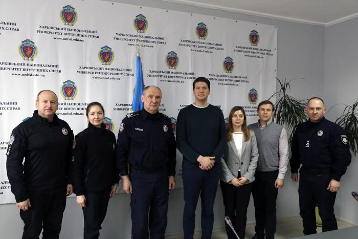 Представники КМЄС зустрілися з ректором університету, генералом поліції третього рангу Валерієм Сокуренком, першим проректором, підполковником поліції Віктором Василенком, проректором, полковником поліції Олександром Музичуком, начальником відділу міжнародного співробітництва, підполковником поліції Тетяною Матюшковою. Під час зустрічі обговорювалися питання щодо подальшого співробітництва, розширення участі Харківського національного університету внутрішніх справ у проєкті міжнародної технічної допомоги «Операційна підтримка в наданні стратегічних консультацій щодо реформування сектору цивільної безпеки України (2021–2024 рр.)», у якому реципієнтом виступає ХНУВС, а партнером із розроблення – Консультативна місія Європейського Союзу в Україні. Також під час зустрічі обговорено залучення представників КМЄС до міжнародних науково-практичних конференцій, бінарних занять та інших заходів, що проводяться університетом, та залучення представників вишу до освітніх заходів, що проводяться КМЄС.
