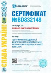 За результатами вебінару Дмитро Слинько пройшов тестування та отримав відповідний сертифікат. Набуті компетентності будуть використані в освітньому процесі.