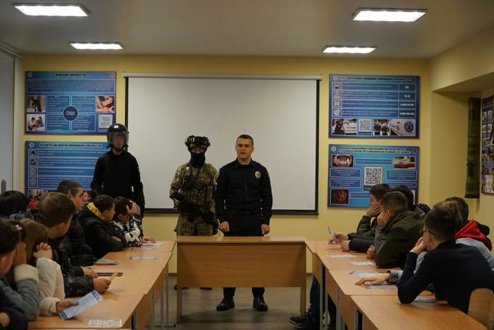 Заступник декана з навчально-методичної роботи факультету № 4 Юрій Онищенко та провідний фахівець факультету № 1 Лілія Жиронкіна розповіли про умови вступу до університету, спеціальності, за якими готують фахівців. Вони також проінформували молодь, що кандидати на навчання до закладів вищої освіти зі специфічними умовами навчання, які здійснюють підготовку поліцейських за кошти державного бюджету (курсанти), повинні обов’язково заповнити анкету на сайті: https://osvita.np.gov.ua/