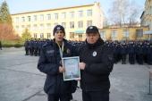 Під час ранкового шикування декан факультету № 1 ХНУВС Віталій Романюк привітав і вручив нагороди призерам відкритого чемпіонату Хмельницької області з рукопашного бою на честь вшанування пам’яті спортсменів, які віддали життя на захист України, та відкритого чемпіонату Хмельницької області з кікбоксингу ВАКО.