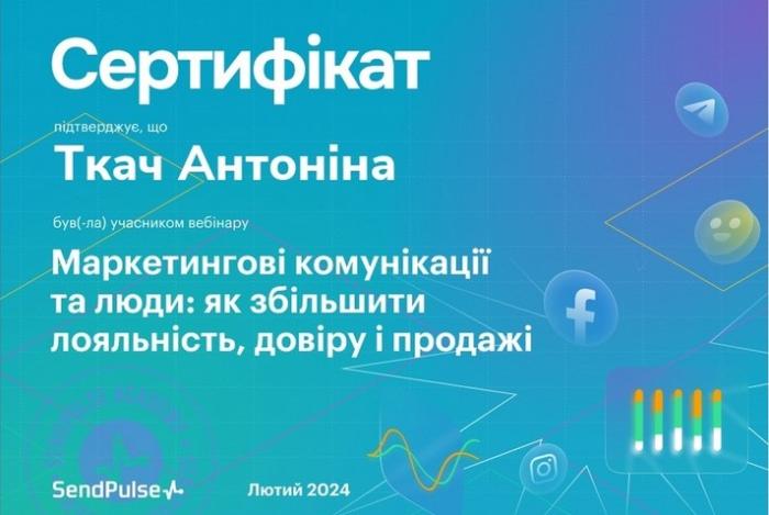 Завідувачка кафедри соціально-економічних дисциплін Сумської філії ХНУВС, кандидатка економічних наук, доцентка Олена Лук’янихіна та студентка третього курсу за спеціальністю «Право» Антоніна Ткач взяли участь у вебінарі компанії «СендПульс»: «Маркетингові комунікації та люди: як збільшити лояльність, довіру і продажі».