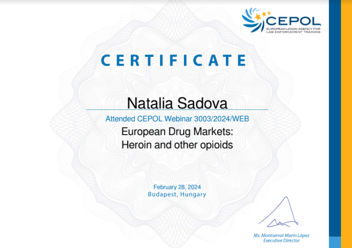 Представники Харківського національного університету внутрішніх справ взяли участь у вебінарі «Європейські ринки наркотиків: героїн та інші опіоїди» (European Drug Markets: Heroin and other opioids), який відбувся на освітній платформі LEEd CEPOL.