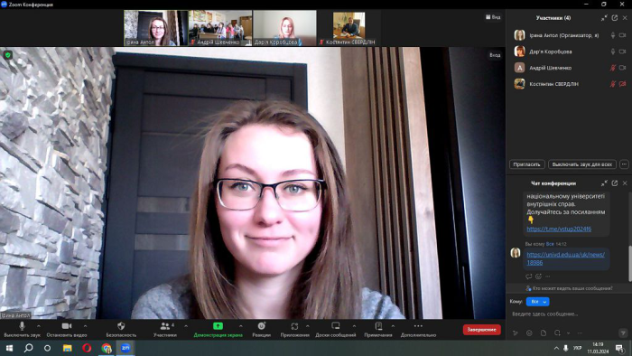 Костянтин Свердлін розповів про особливості вступної кампанії 2024 року, про переваги навчання у Харківському національному університеті внутрішніх справ на факультеті № 6, зокрема в період воєнного стану. Заступник декана також ознайомив учасників онлайн-зустрічі з матеріально-технічною базою навчання на факультеті № 6 та запропонував майбутнім абітурієнтам, які виявили бажання вступати до ХНУВС, доєднатися до телеграм-каналу факультету для подальшої співпраці.