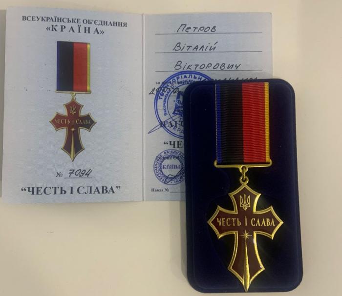 За активну волонтерську діяльність, спрямовану на допомогу Збройним Силам України, підрозділам Міністерства внутрішніх справ України, ветеранам, цивільному населенню та з нагоди Дня українського добровольця працівник факультету № 2 Харківського національного університету внутрішніх справ Віталій Петров отримав відзнаку Харківської обласної ради «Честь і слава».