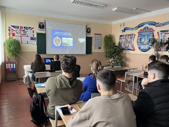 Вона презентувала факультети та спеціальності, за якими здійснюється підготовка фахівців у Харківському національному університеті внутрішніх справ, акцентувала увагу на перевагах навчання у поліцейському виші.