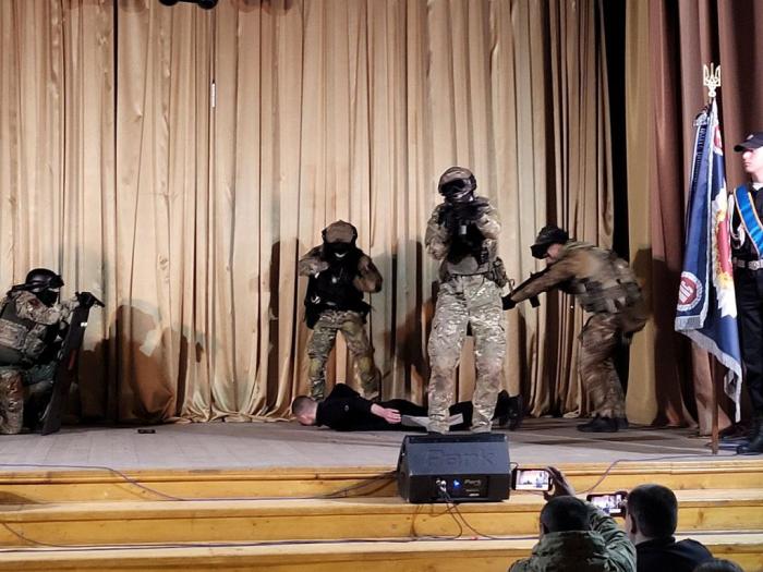 Курсанти виконали Державний Гімн України та разом із присутніми вшанували хвилиною мовчання пам'ять захисників, що загинули, захищаючи Україну, а також мирних громадян, які стали жертвами російської агресії.