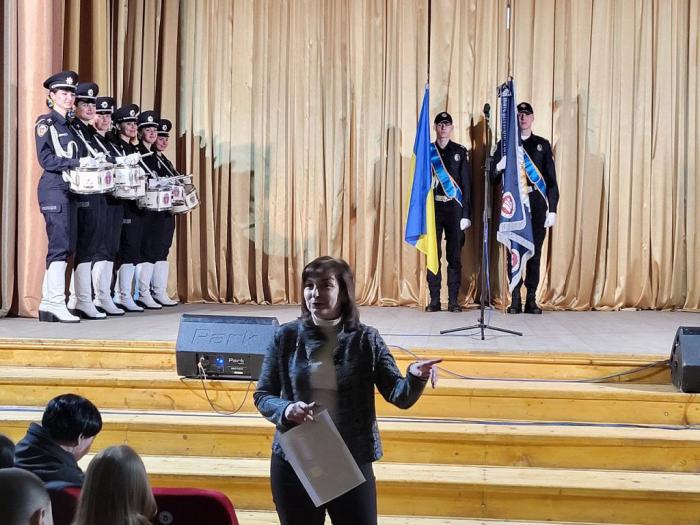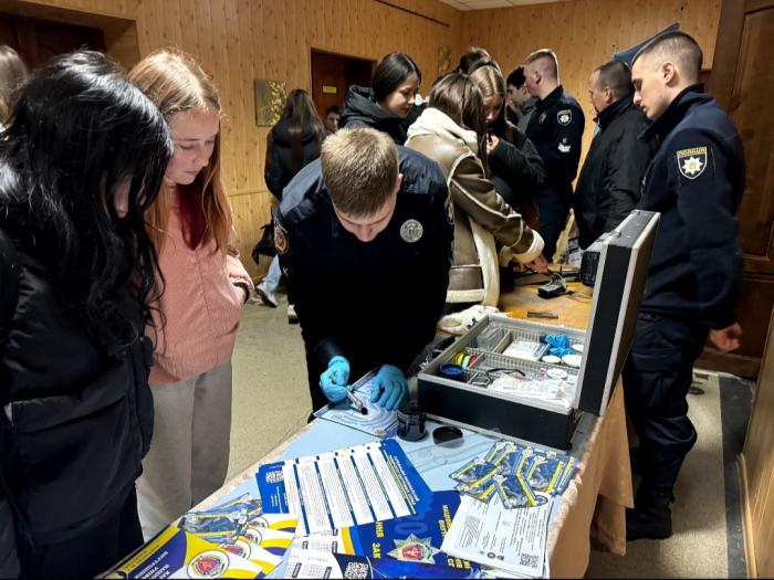 Декан факультету № 1 Віталій Романюк, завідувачка кафедри конституційного і міжнародного права факультету № 4 Тетяна Гудзь, провідна фахівчиня факультету № 1 Лілія Жиронкіна ознайомили молодь зі спеціальностями, за якими готують фахівців для підрозділів поліції, розповіли про перспективи розвитку професії поліцейського, умови навчання та проживання курсантів, про спортивні секції, наукові гуртки тощо. Віталій Романюк підкреслив, що для того, щоб навчатися у закладах вищої освіти зі специфічними умовами навчання, де готують поліцейських, насамперед необхідно заповнити анкету на сайті Національної поліції України.