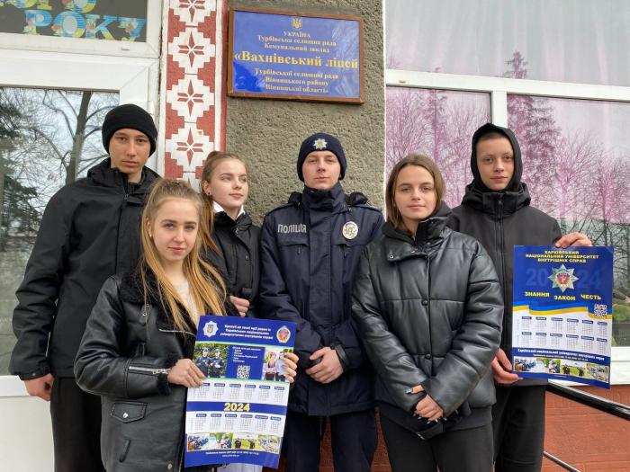 Під час короткострокової відпустки курсанти 1 курсу факультету № 3 Ярослав Лозінський, Роман Кричківський та Артем Мироненко відвідали заклади загальної середньої освіти – Мурованокуриловецьку школу-інтернат селища Муровані Курилівці Вінницької області, комунальний заклад «Вахнівський ліцей» с. Вахнівка Вінницької області, Новоаврамівський ліцей с. Новоаврамівка Полтавської області – та провели низку бесід із старшокласниками. Вони розповіли учням про умови вступу до закладу вищої освіти, факультети і спеціальності, за якими готують фахівців, умови навчання, соціальні гарантії, алгоритм дій абітурієнтів під час підготовки до вступу, а також переваги навчання у поліцейському виші.