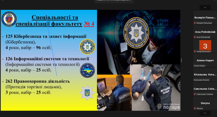 Керівництво факультету № 4 ХНУВС провело профорієнтаційний захід із майбутніми вступниками та їх батьками із Донецької та Херсонської областей на тему «Особливості вступу і навчання в Харківському національному університеті внутрішніх справ у 2024 році». До онлайн-зустрічі приєдналося понад 255 локацій.