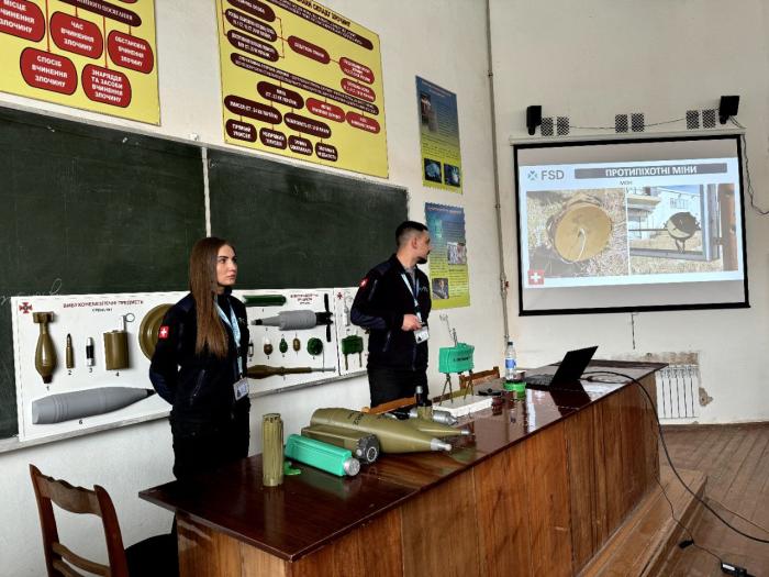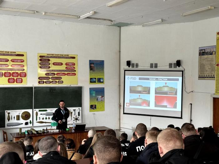 На всіх локаціях Харківського національного університету внутрішніх справ представники Швейцарського фонду з протимінної діяльності FSD (Fondation suisse de deminage) в Україні провели інформаційний захід за темою «Ризики, пов’язані з вибухонебезпечними предметами» для курсантів 1-4 курсів факультетів №№ 1-4. Вони ознайомили здобувачів освіти з ознаками різноманітних боєприпасів, можливими варіантами їх розташування. Розглядалися питання щодо ознак потенційно небезпечних територій та способів їх маркування (позначення), а також порядку поведінки під час потрапляння на небезпечні території, пов’язані з вибухонебезпечними предметами.