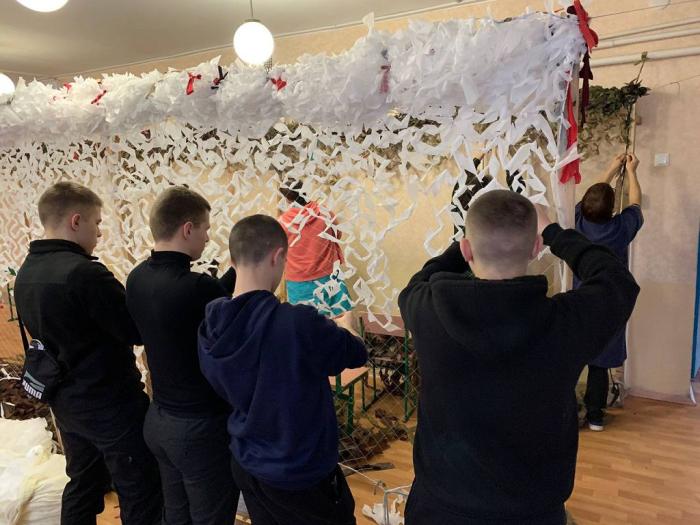 Курсанти Сумської філії Харківського національного університету внутрішніх справ продовжують активну волонтерську діяльність та займаються плетінням маскувальних сіток, які є рятівним щитом для військових, техніки та окопів, адже роблять їх менш помітними для ворога.
