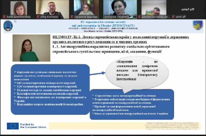 Доцентки кафедри гуманітарних дисциплін Сумської філії ХНУВС Ганна Довгополова та Тетяна Пономаренко взяли участь у презентації проєкту «Досвід ЄС у сфері митної безпеки та протидії корупції в Україні» (EUFOCUSACU).