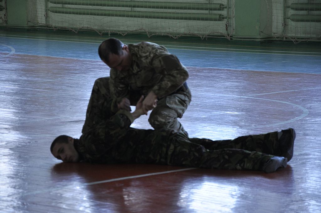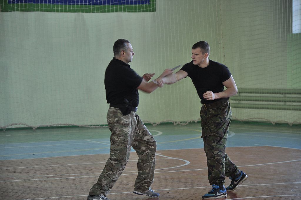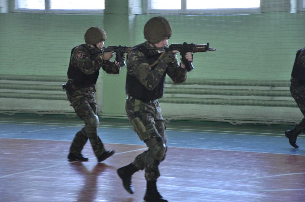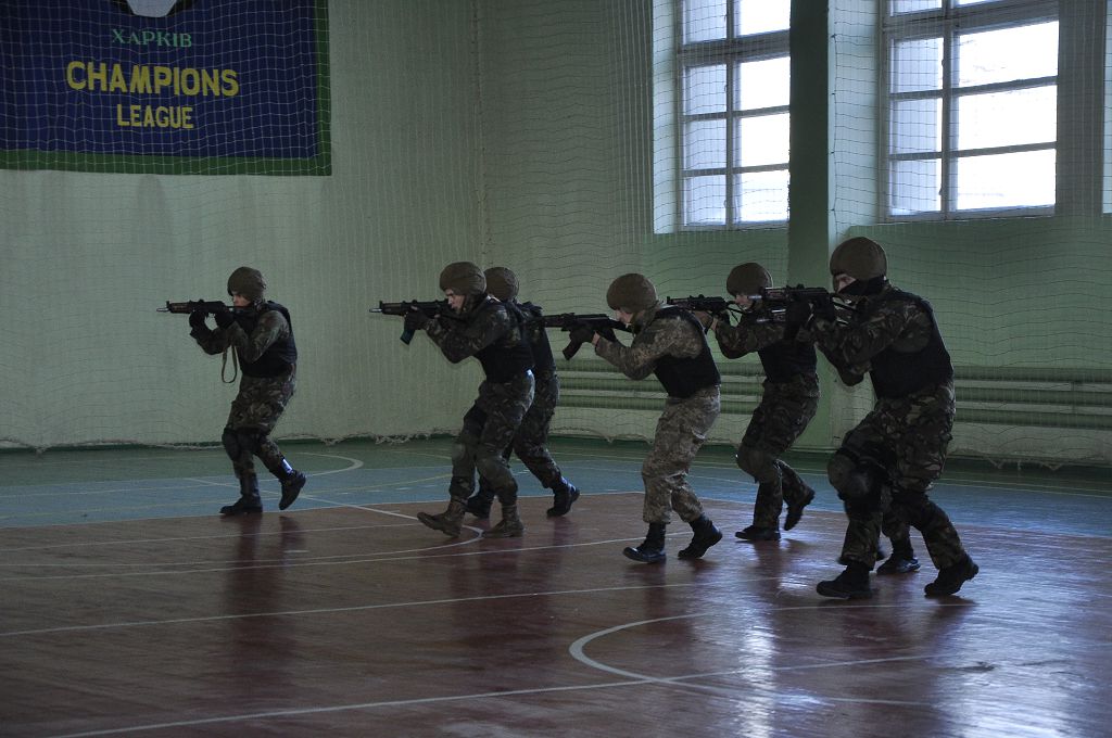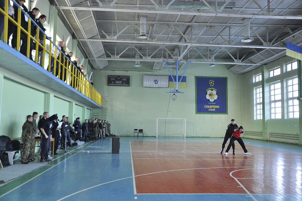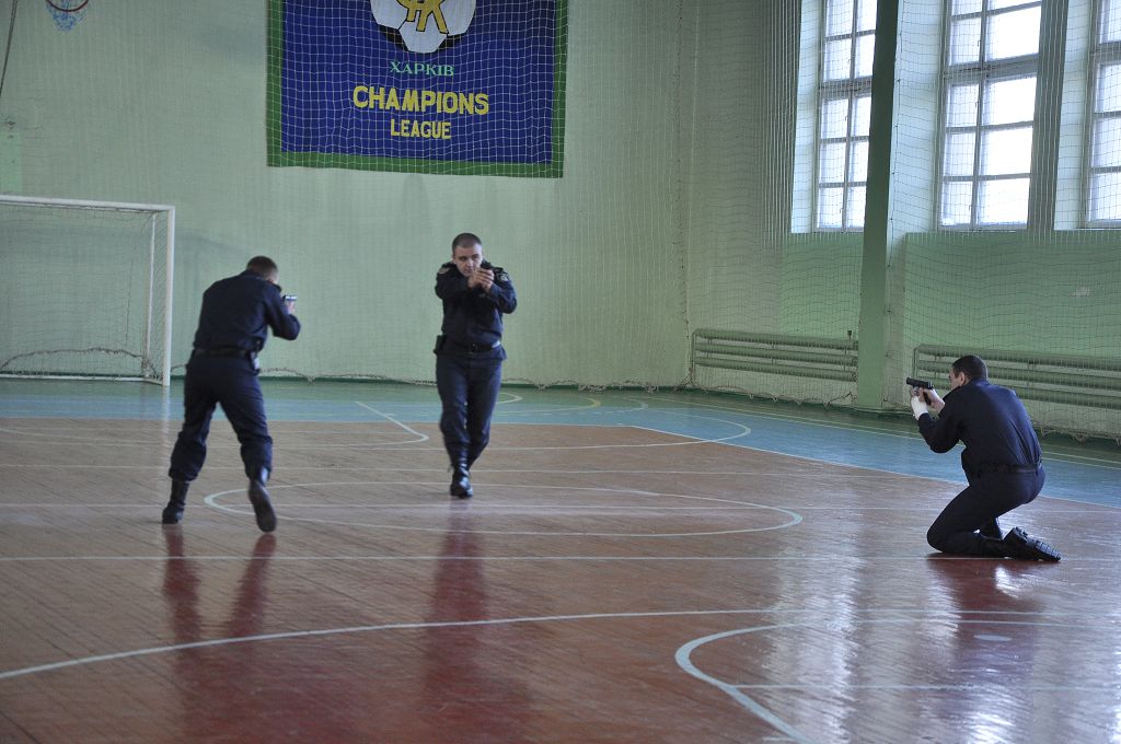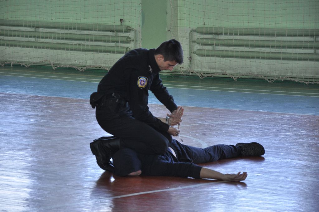 У спортивній залі університету відбулась демонстрація практичних вправ, направлених на вирішення екстремальних ситуацій під час службових дій. Присутнім продемонстрували рух і перешикування малих бойових груп, бойові шикування при групових порушеннях публічної безпеки, спеціальні та підводящі вправи рухово-координаційної спрямованості при обеззброєнні тощо.