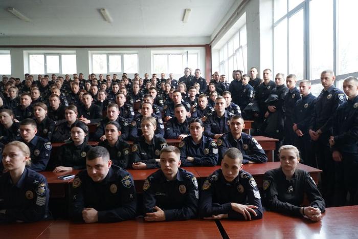 Валерій Васильович перевірив, як майбутні випускники складають державний іспит з дисципліни «Теорія держави і права». Після чого відбулась відверта розмова ректора з курсантами випускних курсів, які найближчим часом відбудуть за місцем несення служби до територіальних підрозділів Національної поліції України в областях. Він звернувся до курсантів: «Більшість із вас поїдуть працювати на схід, підтримувати правопорядок, захищати громадян, надавати їм кваліфіковану професійну допомогу. На деокупованих територіях ви будете забезпечувати публічну безпеку і порядок, разом із місцевими жителями відновлюватимете громади. Ваш обов’язок – віддано служити державі і людям. Бажаю вам життєвої наснаги, професійних успіхів, невичерпної енергії задля світлого майбутнього нашої держави. Служіть і працюйте так, щоб вас поважали люди й оберігав Господь Бог! Слава Україні!».