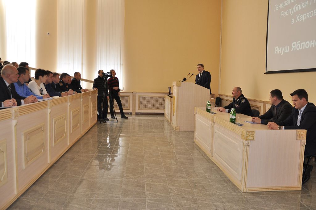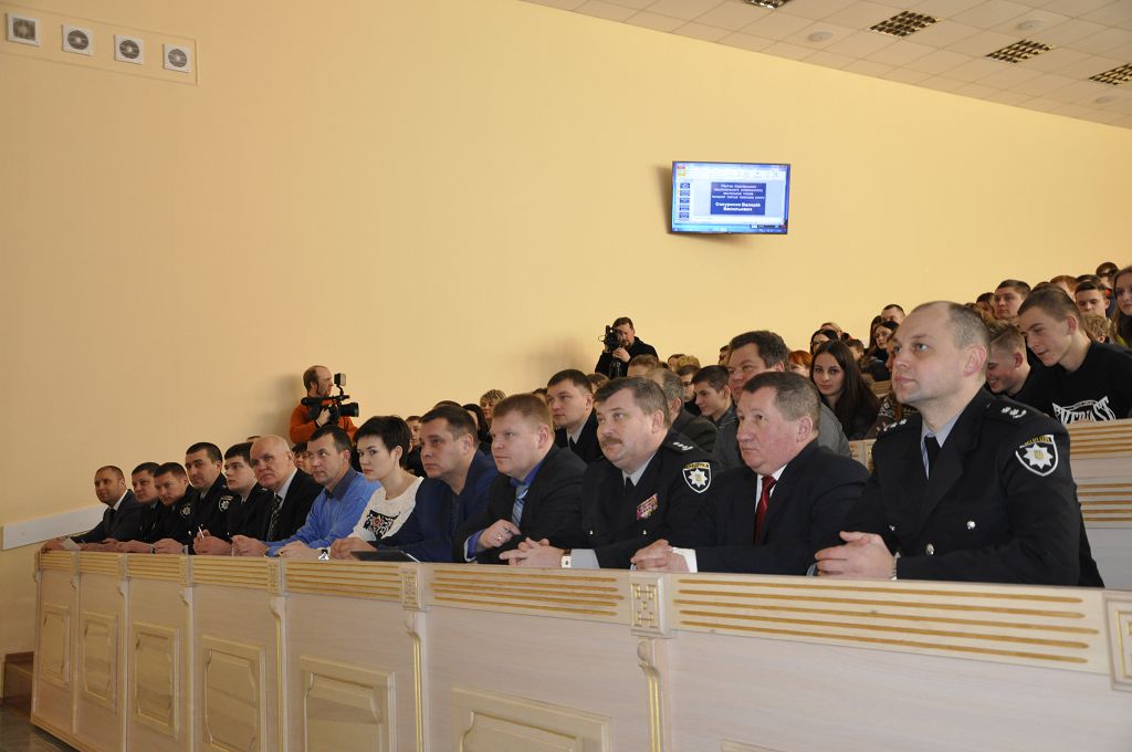 Проректор університету підполковник поліції Михайло Бурдін поінформував присутніх щодо умов набору на навчання до університету у 2017 році та за якими спеціальностями готують в університеті фахівців.
