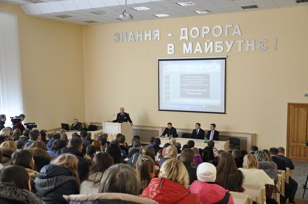 З вітальним словом до присутніх звернувся ректор університету генерал поліції третього рангу Валерій Сокуренко. Він розповів про університет, про напрями його діяльності, пріоритети, яких у навчанні та вихованні молоді дотримується колектив.