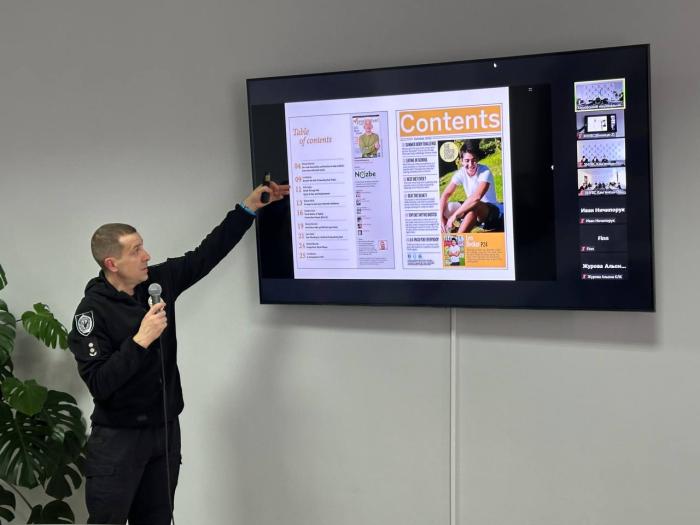 Костянтин Бугайчук у форматі інтерактивного тренінгу продемонстрував здобувачам освіти найбільш поширені проблеми, що трапляються у презентаціях до виступів на науково-практичних конференціях, ілюстративних матеріалах до наукових статей, навчально-методичних рекомендацій, монографій та інших праць. Він розповів про основні принципи дизайну, зокрема групування, вирівнювання, повторення і контраст, а також на конкретних практичних кейсах продемонстрував їх втілення в особливостях сприйняття аудиторією текстів, малюнків, фотографій, схем, діаграм, графіків, таблиць і посилань. Спікер детально роз'яснював наявні проблеми у сфері візуальної комунікації, надавав практичні рекомендації, які здобувачі освіти зможуть застосовувати у подальшій науковій діяльності.