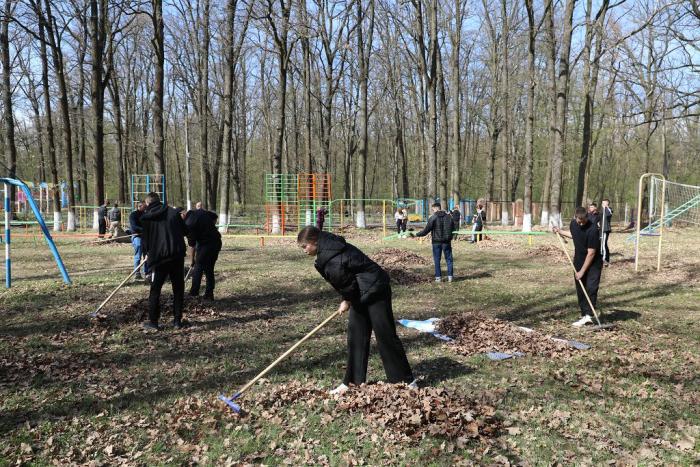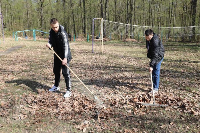 Курсанти висадили дерева та навели лад на території Комунального закладу «Прибузька спеціальна школа» Вінницької обласної ради та «Центру денного догляду для дітей “Зернятко”». Під час прибирання курсанти дарували посмішки та гарний настрій малечі, яка також допомагала своїм дорослим друзям.