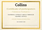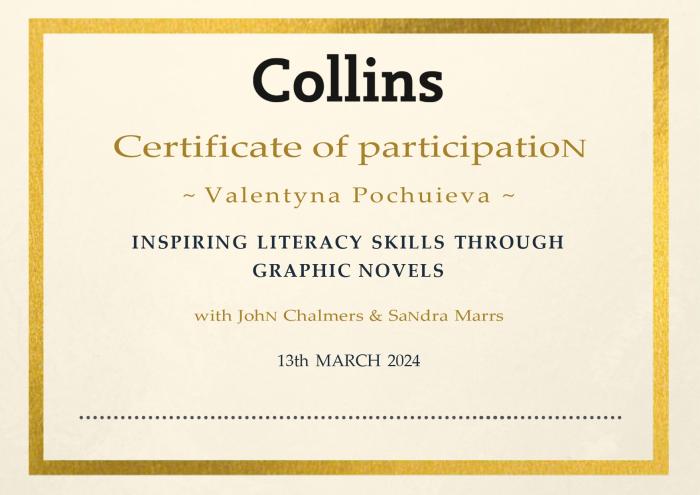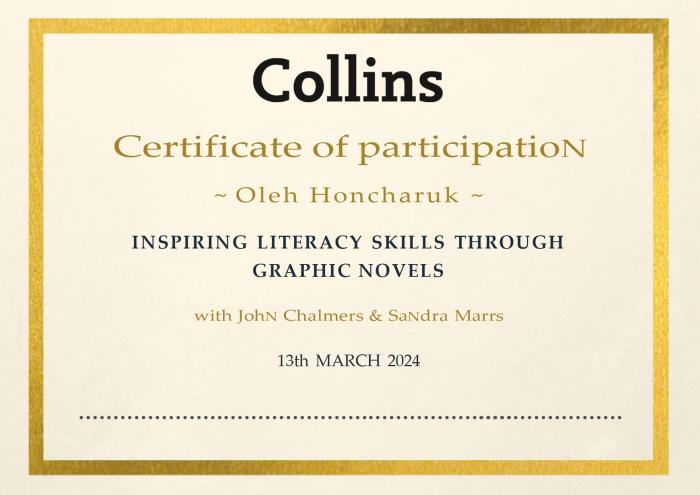 Завідувачка кафедри іноземних мов факультету №4 ХНУВС Олена Статівка, доценти цієї ж кафедри Олег Гончарук, Валентина Кочина, Валентина Почуєва, старші викладачі Артем Білoусов та Лариса Сазанова взяли участь у міжнародному вебінарі «Inspiring Literacy Skills Though Graphic Novels» із спікерами Джоном Чалмерс і Сандрою Маррс від компанії Collins. Під час вебінару викладачі дізналися, як за допомогою графіки та коміксів можливо підвищити зацікавленість до читання.