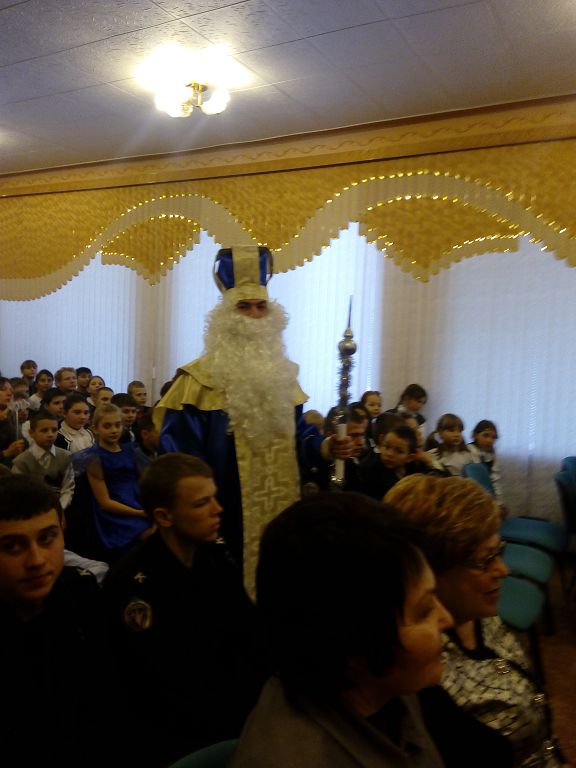 Працівники відділу соціально-гуманітарної роботи Харківського національного університету внутрішніх справ взяли участь у святкуванні Дня Святого Миколая у підшефній загальноосвітній школі-інтернаті № 11 м. Харків. Вони привітали дітлахів зі святом, вручили їм подарунки та солодощі.