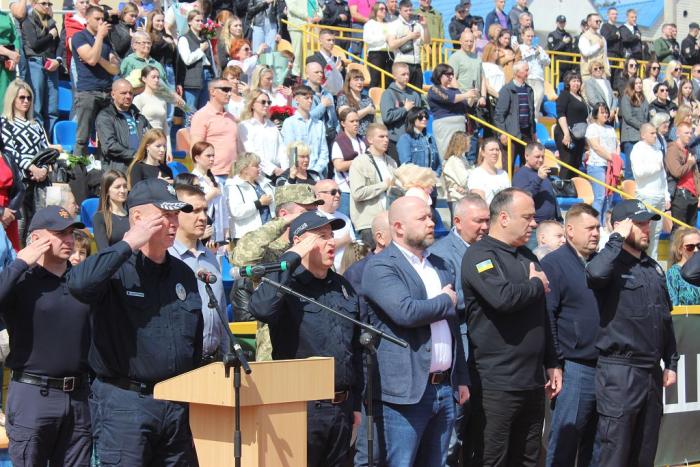 Молодих лейтенантів поліції привітали представники органів державної влади та місцевого самоврядування, Сил безпеки та оборони, керівники ГУНП в областях, інші.