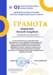 Доцентка кафедри соціально-гуманітарних дисциплін факультету № 6, кандидатка філологічних наук Наталія Кобилко нагороджена Грамотою від Державної наукової установи «Інститут модернізації змісту освіти» Міністерства освіти і науки України за вагомий внесок у популяризацію художнього слова, української культури та історії, високу професійну майстерність, формування патріотичних цінностей здобувачів освіти, сприяння творчому й інтелектуальному розвитку молодого покоління як запоруки успішного майбутнього української нації.