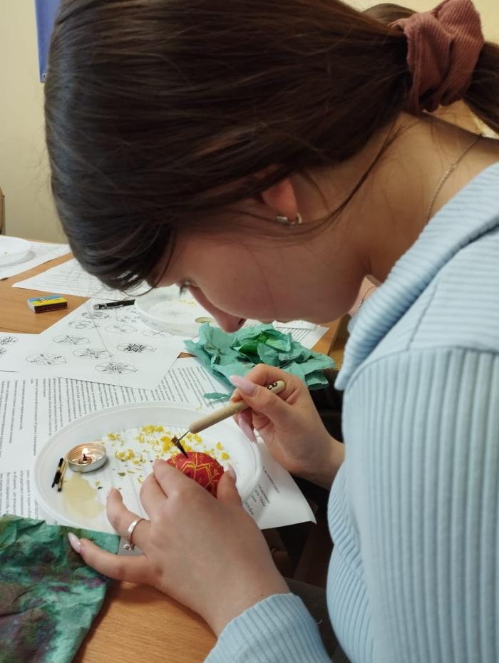 З метою ознайомлення з історією, технікою створення, символікою та значенням писанки як давнього українського мистецтва, працівниці факультету № 6 методистка Оксана Власенко та фахівчиня Олена Адамчук провели для студенток майстер-клас із писанкарства. Дівчата навчилися створювати свою унікальну писанку, використовуючи традиційну техніку нанесення малюнка воском, кольори та символіку писанкарства.