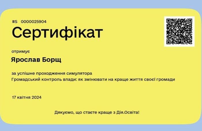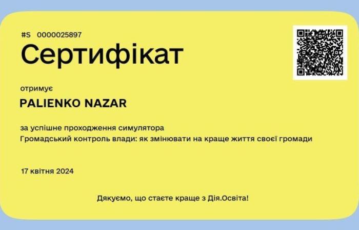Представники факультету № 1 – актив курсантської ради та учасники Школи наукового лідерства пройшли курс за темою «Громадський контроль влади: як змінювати на краще життя своєї громади», який був представлений у форматі проходження симулятора на національній едьютейнмент освітній платформі актуальних знань і навичок «Дія.Освіта».