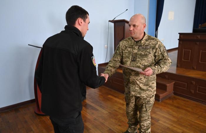 За сумлінне ставлення до виконання службових обов’язків і дисциплінованість виявлені під час виконання завдань із контролю за дотриманням прикордонного режиму державного кордону України начальник Чернівецької поліції Віктор Нечитайло вручив іменний годинник курсантові 3 курсу факультету № 4 Данилу Слободянюку.