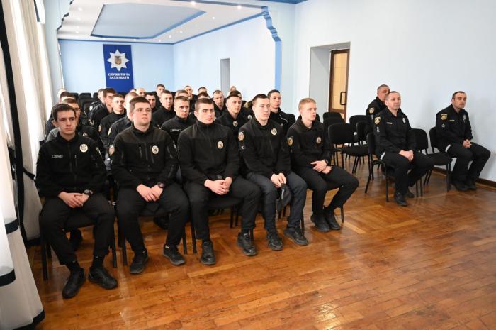 Курсантів привітали – заступник начальника відділу управління службою штабу 31 прикордонного загону імені генерал-хорунжого Олександра Пилькевича Державної прикордонної служби, підполковник Віталій Крочак, начальник ГУНП у Чернівецькій області, полковник поліції Віктор Нечитайло, заступник начальника ГУНП у Чернівецькій області, полковник поліції Святослав Кішлар, професор кафедри кримінального процесу та організації досудового слідства ХНУВС, полковник поліції Геннадій Глобенко.