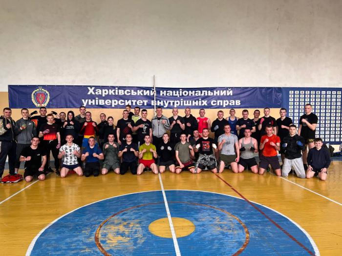 З метою військово-патріотичного виховання, популяризації та пропаганди спорту серед здобувачів вищої освіти, розвитку фізичних і виховання морально-вольових якостей майбутніх працівників Національної поліції України на базі ХНУВС відбулось спільне тренування збірної команди Національної академії Національної гвардії України з рукопашного бою та збірної команди Харківського національного університету внутрішніх справ із таїландського боксу, К-1, кікбоксингу.