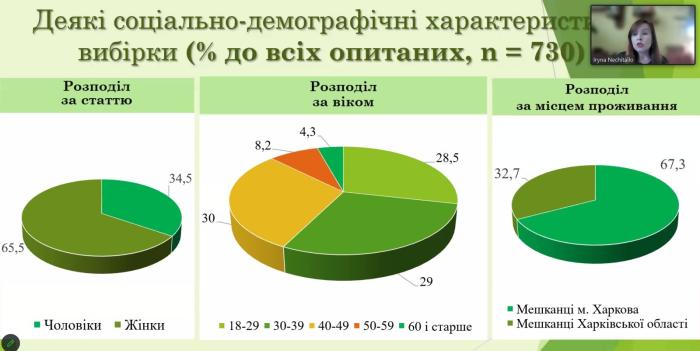 Під час дослідження було опитано 730 респондентів та отримано великий масив даних, згідно з якими було доведено, що жителі Харківщини є життєстійкими та справді непохитними. Статистичні показники на брифінгу презентували представниці кафедри – професорка Ірина Нечітайло та доцентка Яна Пономаренко.