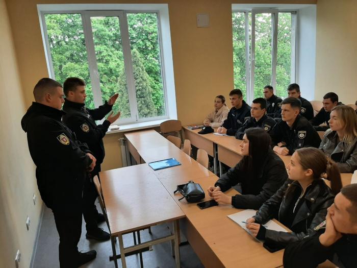 Викладач ознайомив курсантів з термінологією за темою заняття, відпрацював з ними мовний матеріал та тренувальні вправи. Поліцейські поділилися досвідом роботи та розповіли про заходи, спрямовані на протидію злочинності, запобіганню вчиненню нових злочинів, а також обговорили з курсантами структуру і характер професійної діяльності фахівця, основні завдання МВС України щодо протидії злочинності, підтримання громадського порядку та громадської безпеки, охорони, захисту прав і свобод людини, інтересів суспільства і держави.