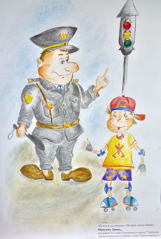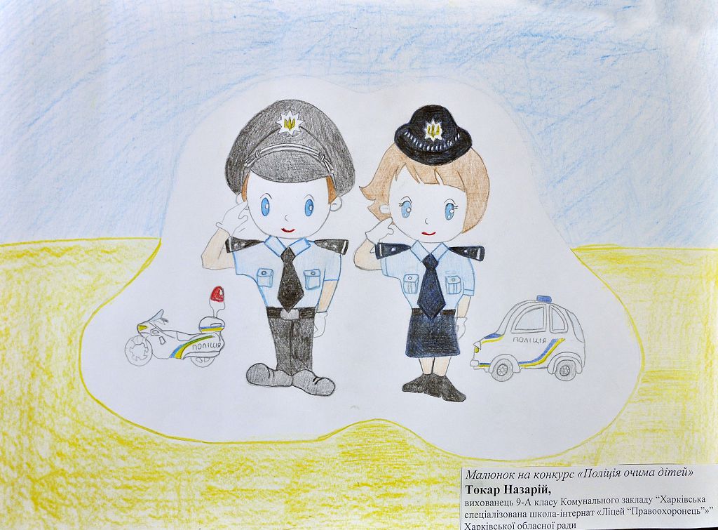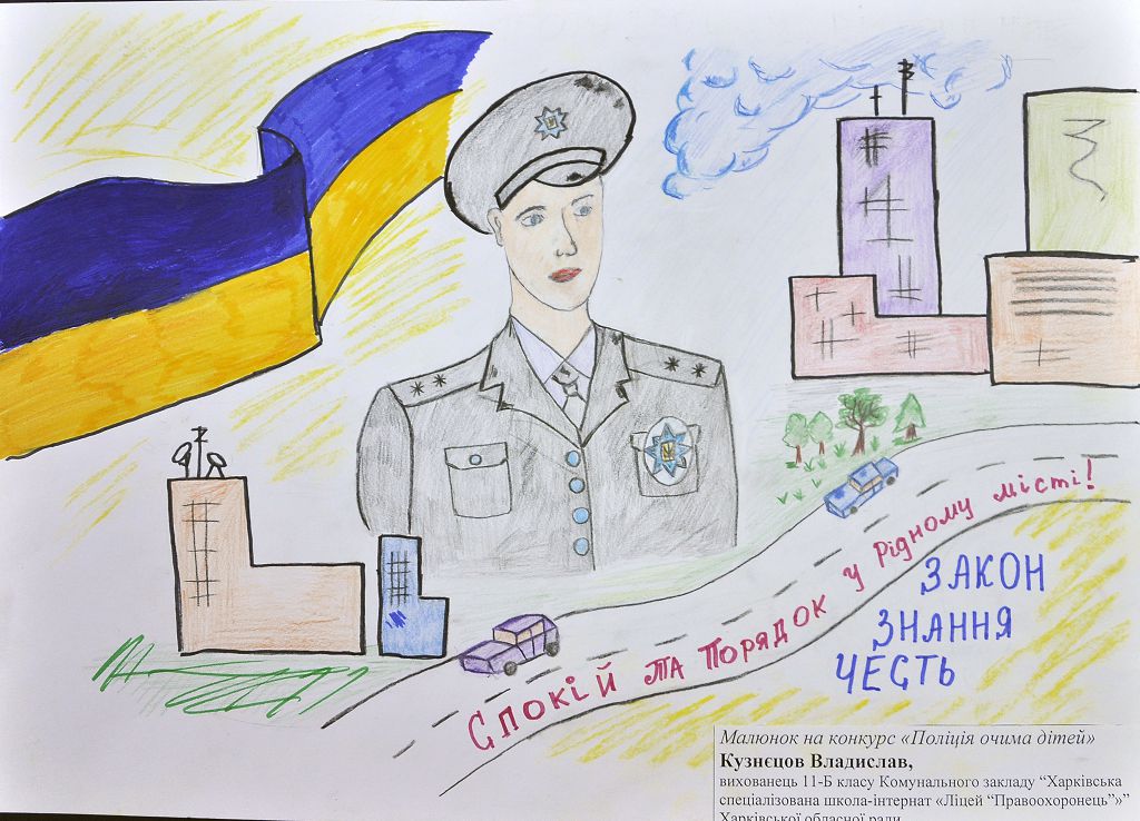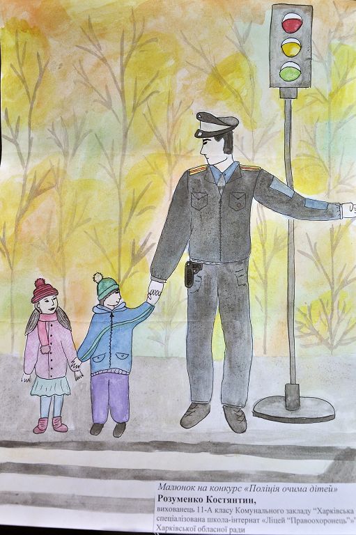 У підшефних навчальних закладах Харківського національного університету внутрішніх справ проведено конкурси малюнків на тему «Поліція очима дітей». Участь у них взяли вихованці ліцею «Правоохоронець» та учні Харківської загальноосвітньої школи-інтернат № 11.