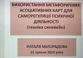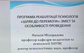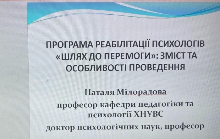 У межах конференції професорка презентувала доповідь «Програма реабілітації психологів «Шлях до перемоги»: зміст та особливості проведення», в якій розповіла про результати проведення реабілітаційної програми, її структуру та особливості підготовки. Під час роботи науково-практичного семінару Наталя Мілорадова провела майстер-клас на тему: «Використання метафоричних асоціативних карт при виконанні техніки “синквейн”», підкреслюючи особливості використання зазначеної психотехнології для саморегуляції психічної діяльності.
