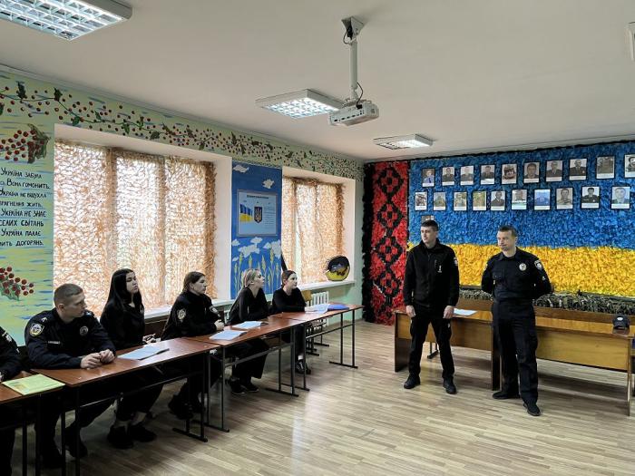 Представники поліції розповіли курсантам про сучасні умови служби у практичних підрозділах Національної поліції України, акцентуючи увагу на особливостях проходження служби у прифронтових регіонах. Вони також наголосили на важливості та необхідності дотримання службової дисципліни поліцейськими, особливо в умовах воєнного стану, та матеріально-технічне забезпечення поліцейських підрозділів тощо.