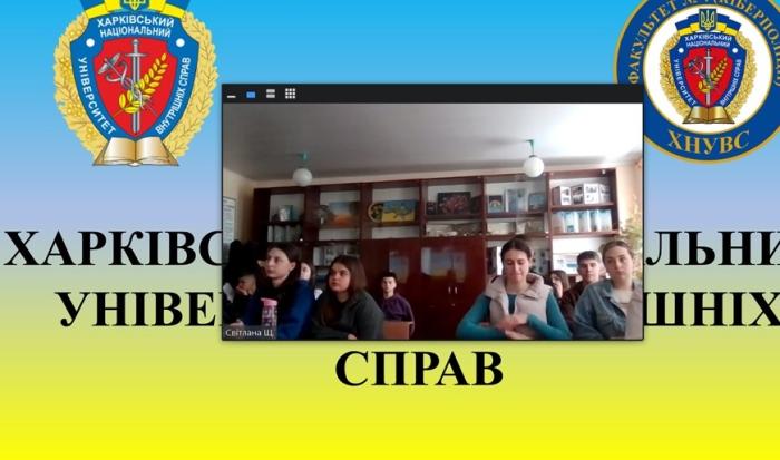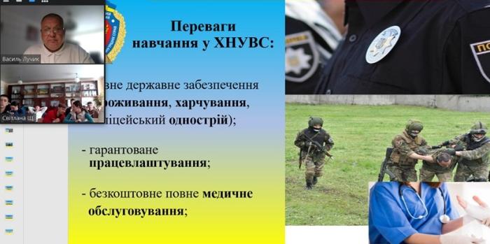 Професор кафедри протидії кіберзлочинності факультету № 4 ХНУВС Василь Лучик провів онлайн-зустріч з учнями 11 класу Вовчківського ліцею імені Василя Равлюка Коломийського району Івано-Франківської області. Він ознайомив випускників із перевагами навчання у ХНУВС, спеціальностями, за якими готують фахівців для правоохоронних органів і перспективами подальшого працевлаштування. Більш детально представник університету зупинився на спеціальностях «Кібербезпека» та «Інформаційні системи і технології», престижності та затребуваності фахівців цих професій на ринку праці.