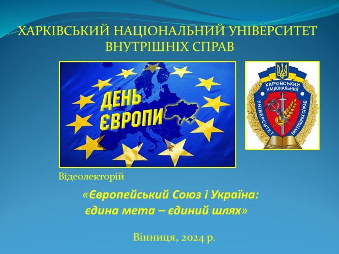 Для здобувачів вищої освіти факультетів №№ 1-4, 6 та Сумської філії ХНУВС відділом соціально-гуманітарної роботи було проведено тематичний відеолекторій «Європейський Союз: єдність мети – єдність шляху», присвячений Дню Європи.