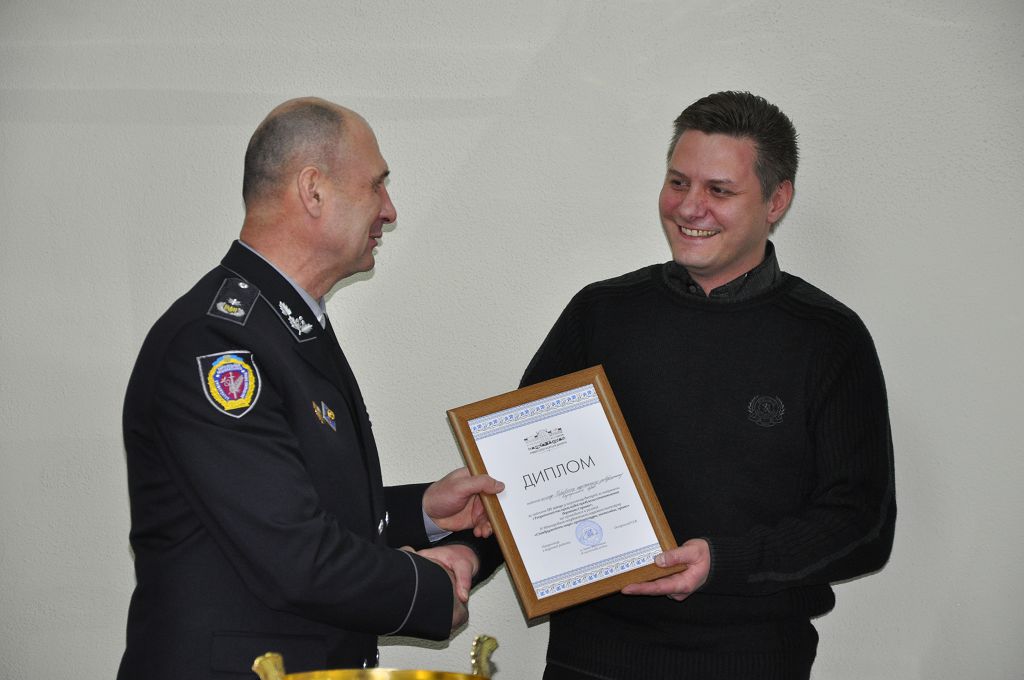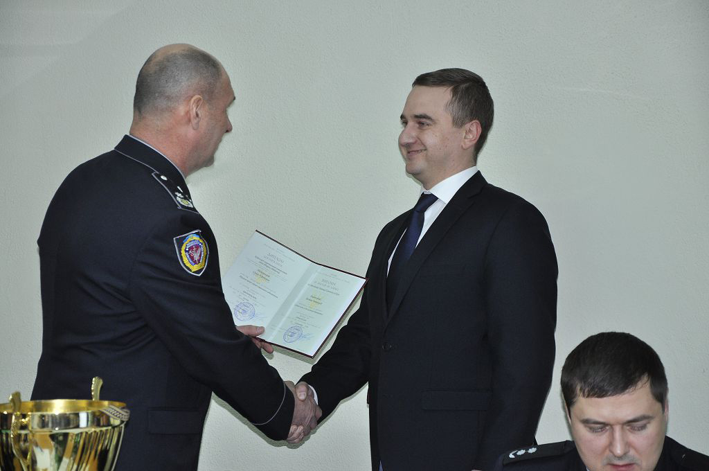 Нагороди вручив ректор університету генерал поліції третього рангу Валерій Сокуренко. Також він поздоровив команду університету ФК «Універ-Динамо», яка нещодавно перемогла у турнірі на «Кубок Міністра внутрішніх справ України 2016 з футзалу» і вручив їй головний трофей – Кубок.