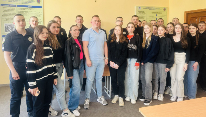 Слідчий відділення розслідування злочинів, скоєних проти життя та здоров’я особи слідчого відділу Камʼянець-Подільського РУП ГУНП в Хмельницькій області старший лейтенант поліції Вадим Белік та доцент кафедри кримінального процесу та організації досудового слідства факультету № 1 підполковник поліції Аліна Піддубна провели бінарне заняття із дисципліни «Кримінальний процес» для навчальної групи 305 факультету № 1.