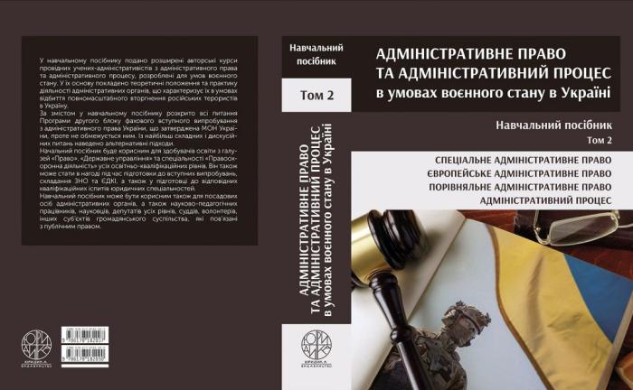 У межах науково-дослідної та методичної співпраці з Академією адміністративно-правових наук і Київським університетом інтелектуальної власності та права представники кафедри адміністративного права та процесу факультету № 1 – завідувачка, докторка юридичних наук, професорка Олена Салманова, професор кафедри, доктор юридичних наук, професор Анатолій Комзюк та доцентка кафедри, кандидатка юридичних наук, професорка Ірина Казанчук долучилися до колективу авторів навчального посібника «Адміністративне право та адміністративний процес в умовах воєнного стану в Україні», виданого у 2-х томах (Том 1. «Загальне адміністративне право. Особливе адміністративне право»; Том 2. «Спеціальне адміністративне право. Європейське адміністративне право. Порівняльне адміністративне право. Адміністративний процес» : За заг. ред. В. Галунька, В. Фелика. Одеса : Видавництво «Юридика», 2024).
