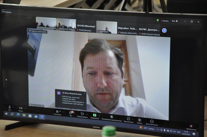В обговоренні сучасних проблем протидії кіберзлочинності та торгівлі людьми взяли участь: начальник Департаменту кіберполіції Національної поліції України Юрій Виходець; начальник Департаменту міграційної поліції НПУ Сергій Шайхет; начальник Департаменту інформаційно-аналітичної підтримки НПУ Олексій Григорович; начальник Департаменту кримінального аналізу НПУ Роман Бутко; суддя Дзержинського районного суду міста Харкова, тренерка Національної школи суддів України Тетяна Штих; начальник 3-го управління (інформаційних технологій та програмування) Департаменту кіберполіції НПУ, кандидат юридичних наук Станіслав Самойлов; директорка Департаменту науки і освіти Харківської обласної військової адміністрації, докторка юридичних наук, професорка Ольга Безпалова; старший менеджер проєктів компоненту «”Безпека людини” Програма підтримки ОБСЄ для України» Сергій Гриненко; начальник управління інформаційної безпеки Департаменту інформатизації МВС України Олександр Тарасов; старший слідчий в особливо важливих справах Управління Головного слідчого управління Державного бюро розслідувань Олександр Анін; начальник відділу протидії кіберзлочинам в Хмельницькій області Департаменту кіберполіції НПУ Олег Дядик; прокурор відділу Вінницької обласної прокуратури Олексій Соловйов; старший детектив підрозділу детективів цифрової криміналістичної лабораторії Національного антикорупційного бюро України Євген Пронін.