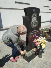 До Дня Героїв студенти першого курсу спеціальності «Право» (кураторки груп – Олена Лук'янихіна та Людмила Парфентій) і доцентка кафедри гуманітарних дисциплін Тетяна Пономаренко поклали квіти до Меморіальної стели Героям і могили Олександра Ткаченка, який загинув 11 липня 2014 року під Сіверськом під час виконання бойового завдання.