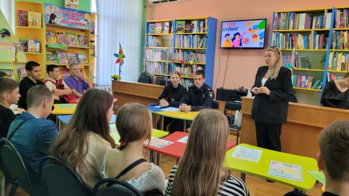 У межах діяльності Центру психологічного здоров’я ХНУВС старша викладачка кафедри педагогіки і психології факультету № 3, майор поліції Олена Макарова і курсанти 3 курсу Валентин Пасенюк і Діана Штифурко, які навчаються за спеціальністю «Психологія», провели інформаційну зустріч «Протидія булінгу» на базі обласної бібліотеки для дітей та юнацтва зі школярами м. Вінниця.