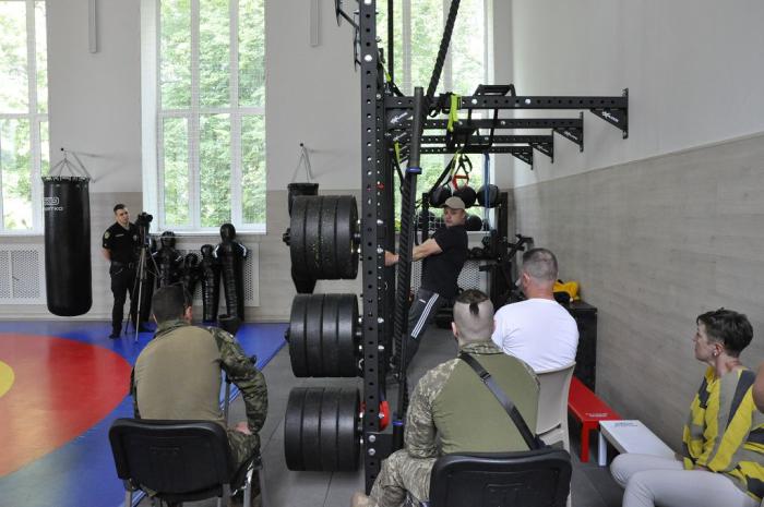 Захід складався із трьох етапів. Під час першого – майстер спорту міжнародного класу з армліфтингу, суддя міжнародної категорії з гирьового спорту, учасник бойових дій Ігор Войцехівський розповів про лікувальну гімнастику з використанням кросфітстанції, яка є у спортзалі університету. Він продемонстрував виконання вправ на цій тренажерній платформі – навантаження на м'язи та їх розвиток, що допоможе під час реабілітації.