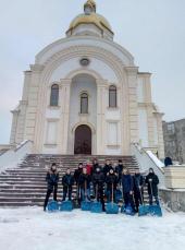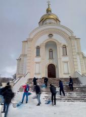 Курсанти Харківського національного університету внутрішніх справ завжди готові надати допомогу. На прохання адміністрації Слобідського району Харківської міської ради представники навчального закладу долучилися до заходів з підготовки міста до різдвяних свят. Напередодні святвечора вони допомогли прибрати територію Храму Святого Архістратига Михаїла від снігу: розчистили територію, прилеглу до Храму, доріжки для вірян, які прийдуть на святкову службу.