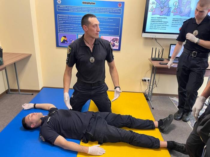 Старший інструктор Тренінгового центру ГУНП у Хмельницькій області, лейтенант поліції Михайло Главчук розповів курсантам третього курсу факультету № 1 Харківського національного університету внутрішніх справ про методику застосування M.A.R.C.H.. Після вивчення теоретичних аспектів були відпрацьовані практичні навички, зокрема накладення бандажу на різні ділянки тіла, алгоритм дій накладання турнікету, а також техніки підтримки та забезпечення прохідності дихальних шляхів. Всі ці знання будуть корисними не лише у воєнний час, а й у буденному житті, коли необхідно надати допомогу людині з травмою, яка несе загрозу його життю та здоров'ю.